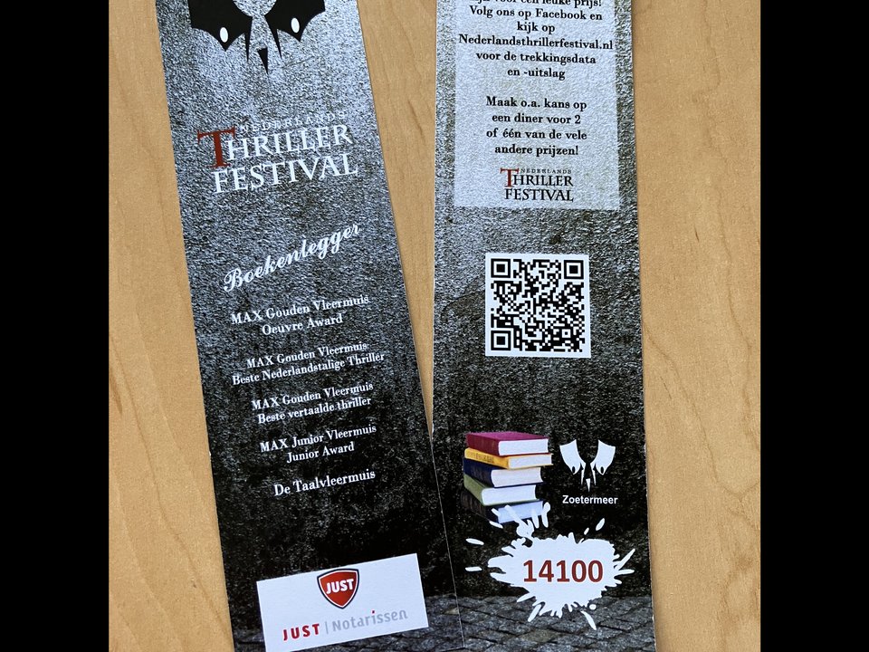 Zoals elk jaar brengen wij ook nu weer een boekenlegger uit ter gelegenheid van het Nederlands Thrillerfestival dat dit jaar voor de 17e keer wordt gehouden! Een boekenlegger met ook dit keer kans op leuke prijzen! Want elke boekenlegger heeft een uniek nummer en de notaris gaat in december een aantal prijswinnende nummers trekken. Blijf onze site volgen voor straks het moment waarop deze trekking gaat plaatsvinden en vervolgens de winnende nummers bekend worden gemaakt!